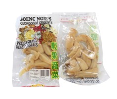 Tsoi Poe is gezouten chinese groente waarmee je kip- of varkensvlees kan klaarmaken. Eerst goed uitspoelen voor het koken.